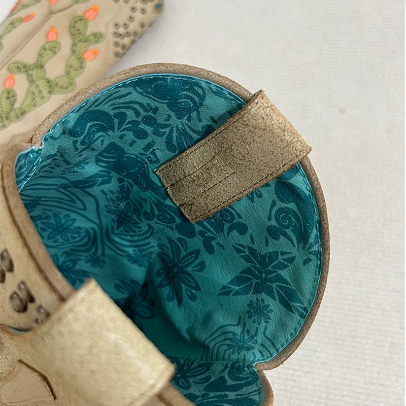 Womens Western Embroidered Boots Rivet Decorate- Khaki Cowgirl Boots All Genuine Leather