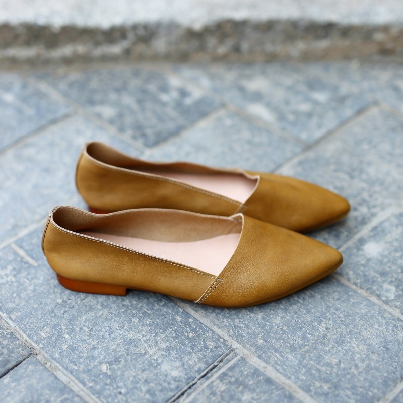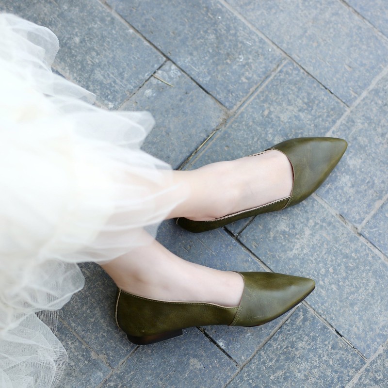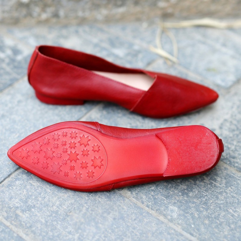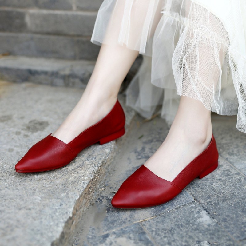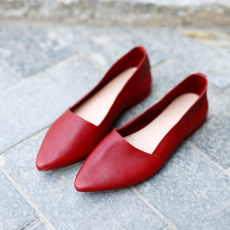 Designer Shoes Genuine Leather Slip-on For Women Handmade Pointed Toe Flats Green/Yellow/Red/Black/Grey