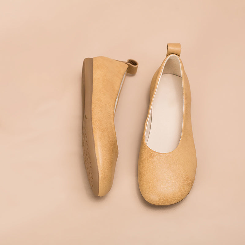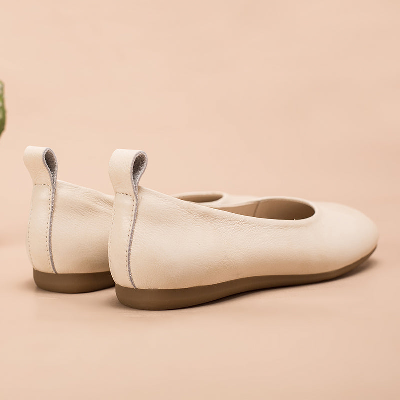 Soft Leather Flat Slip on Loafers for Women Handmade White/Deep Apricot