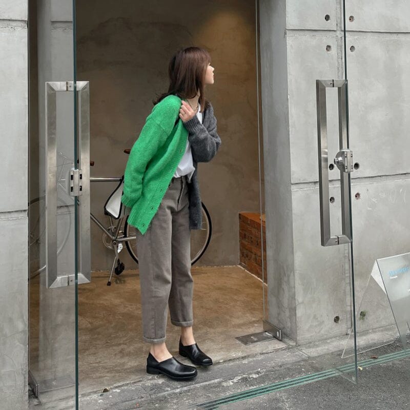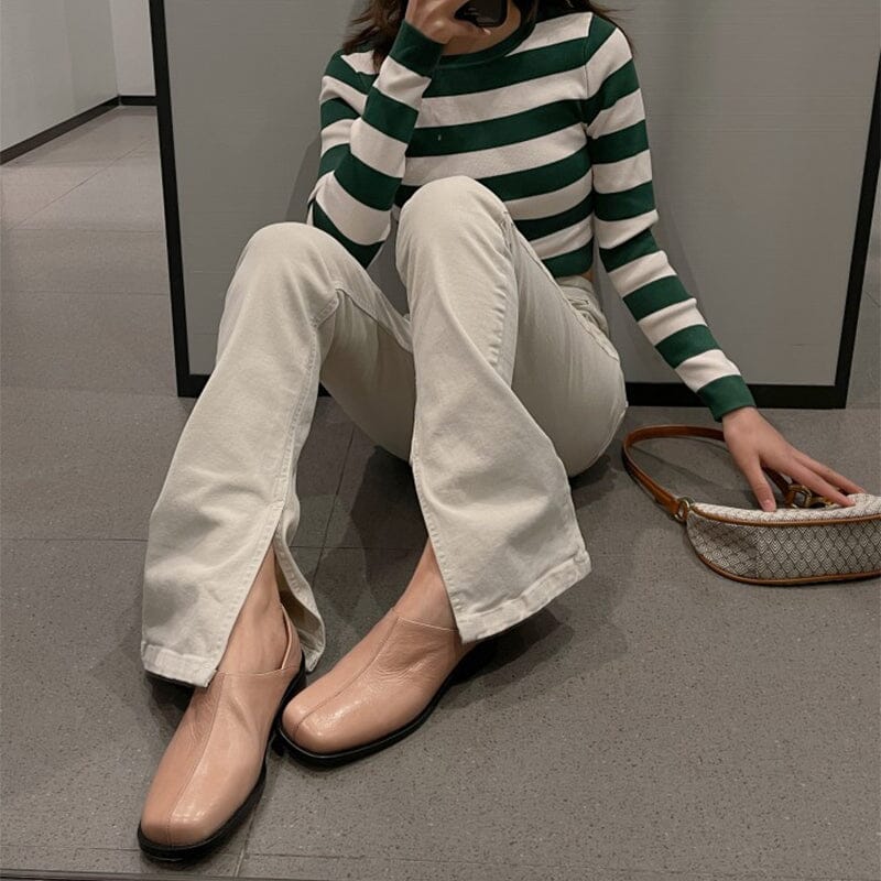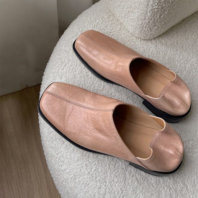 Square Toe Soft Leather Loafers for Women in Pink/Black