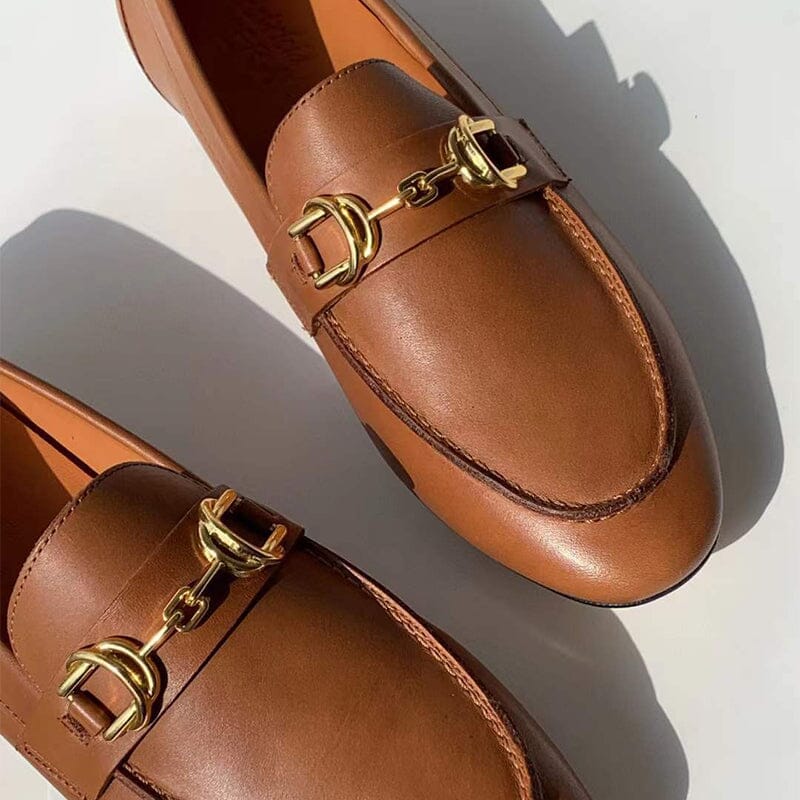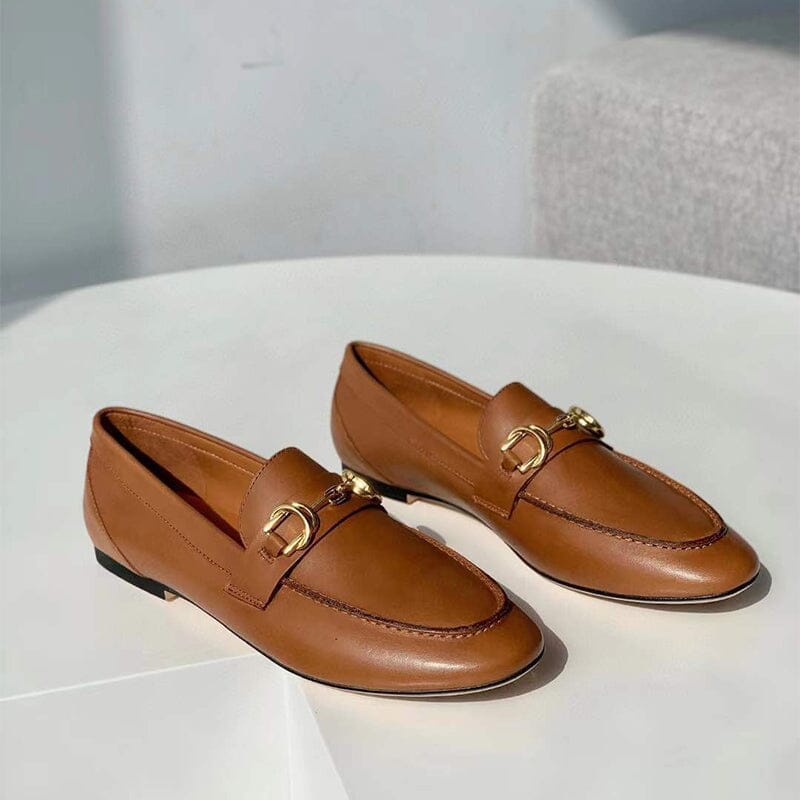 Horsebit-Detailed Handmade Leather Loafers For Women In Black/Brown