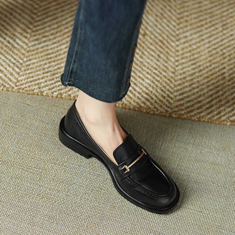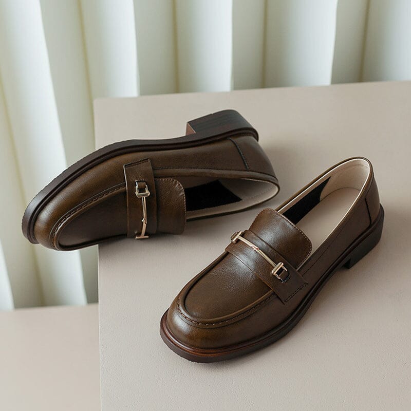 Genuine Leather Loafers For Women Retro Handmade in Black/Green/Brown/Beige