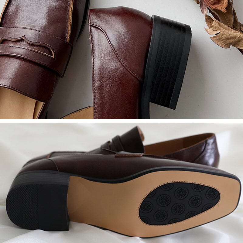 Leather Penny Loafers for Women Square Toe in Brown/Black