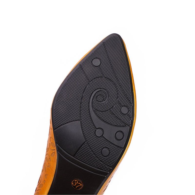 Pumps Women Leather Hollow Chunky High Heels Pointed Shoes Coffee/Camel