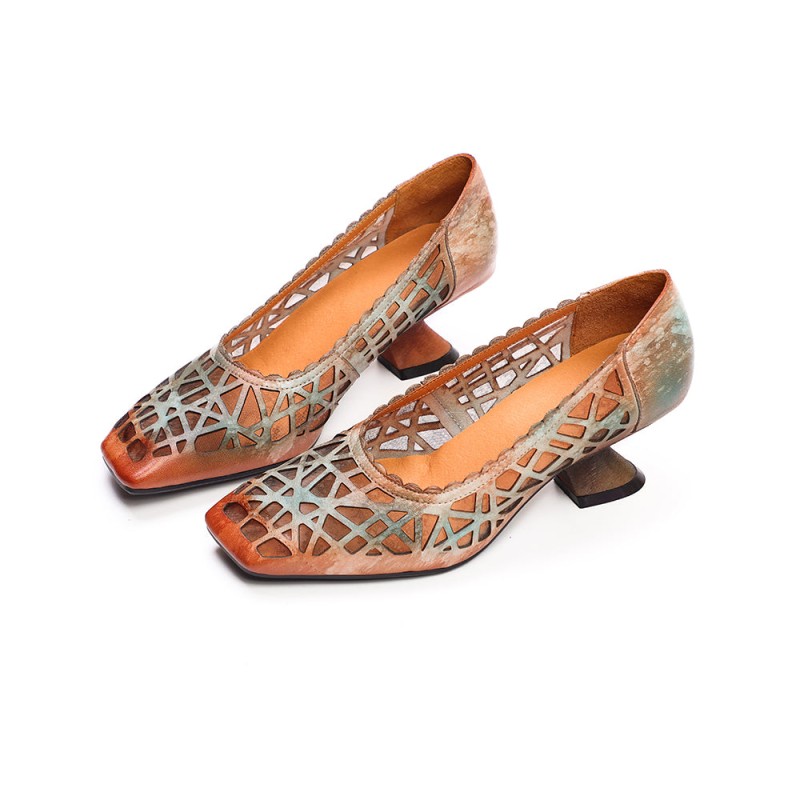 Gradient And Hollowed out Design.Picked Cow Leather Soft,Comfortable And Stand Wear And Tear.With 100% Genuine Leather Lining and Insole, Soft, Breathable and Hygroscopic. The Chunky Heel is Comfortable for Walking.Each Shoes Fixed by Experienced Craftsman.