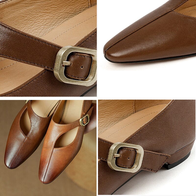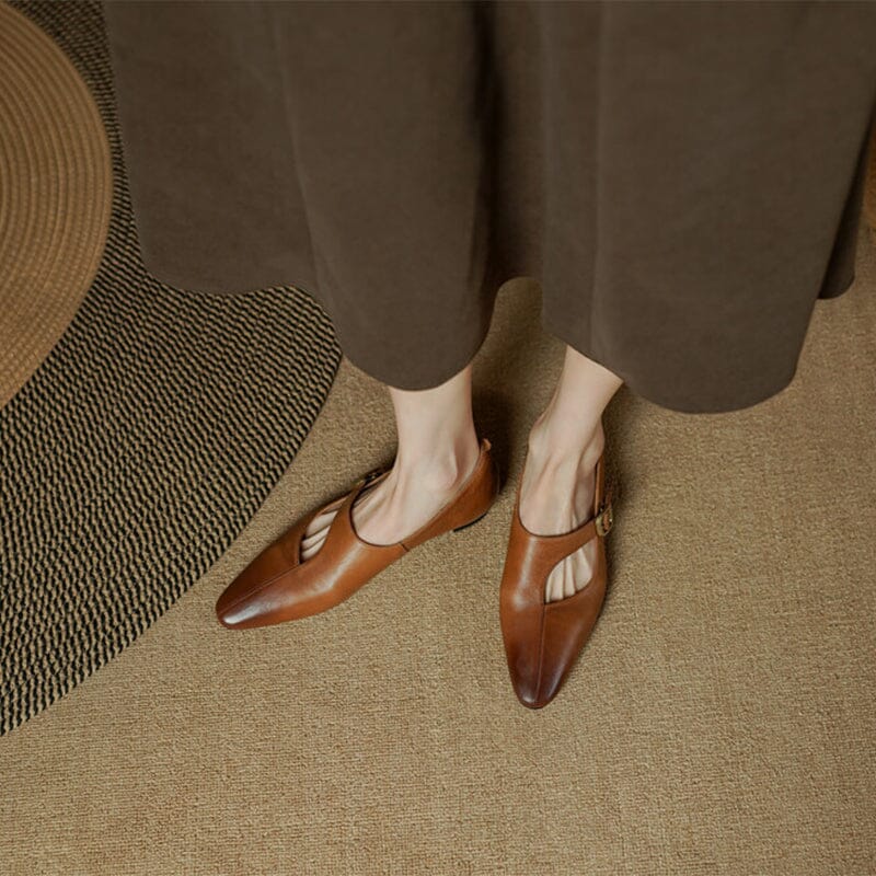 Soft Leather Flat Slip on Flats for Women Handmade Brown/Coffee