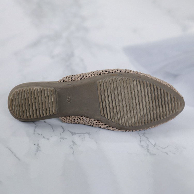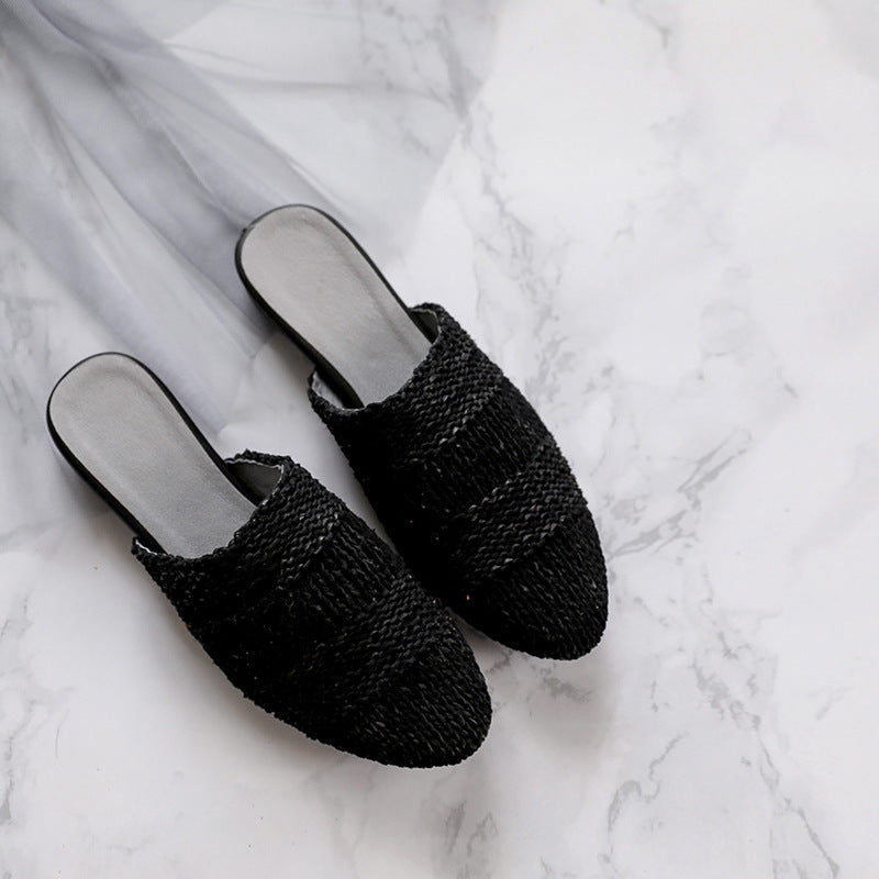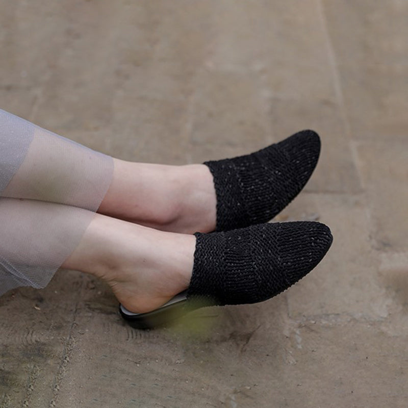 Handemade Leather Slippers For Women Classic Sheepskin Weaving Shoes Black/Gray