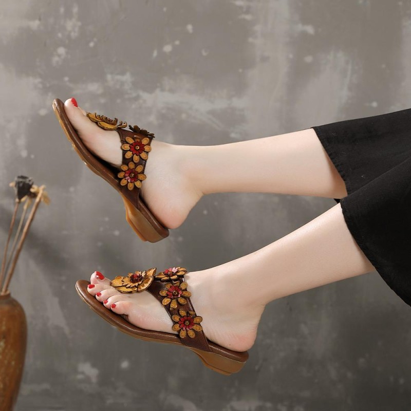 Comfy Leather Thong Sandals Soft Casual Flip Flops Slippers