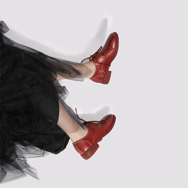 Goodyear Horse Leather Oxfords For Women Classic Leather Sole Derby in Red/Black