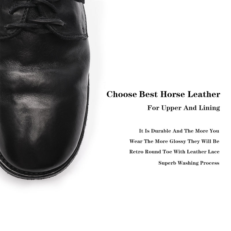 1,Choose Best Horse Leather For Upper And Lining, It Is Durable And The More You Wear The More Glossy They Will Be. Retro Round Toe With Leather Lace,Superb Washing Process.