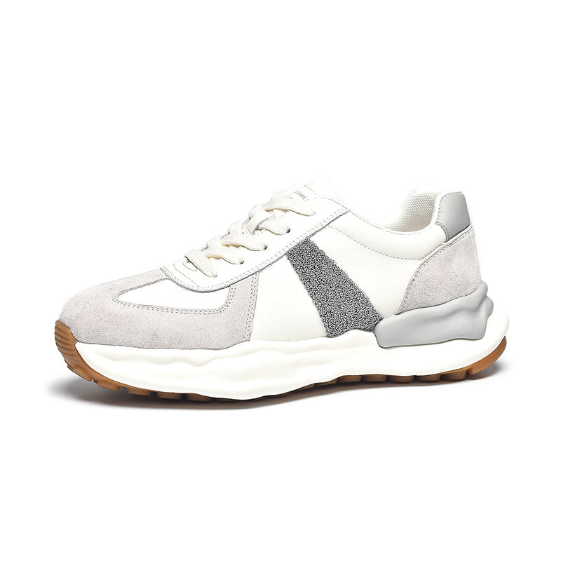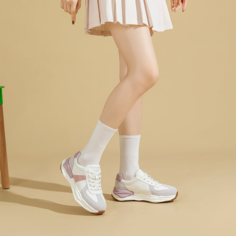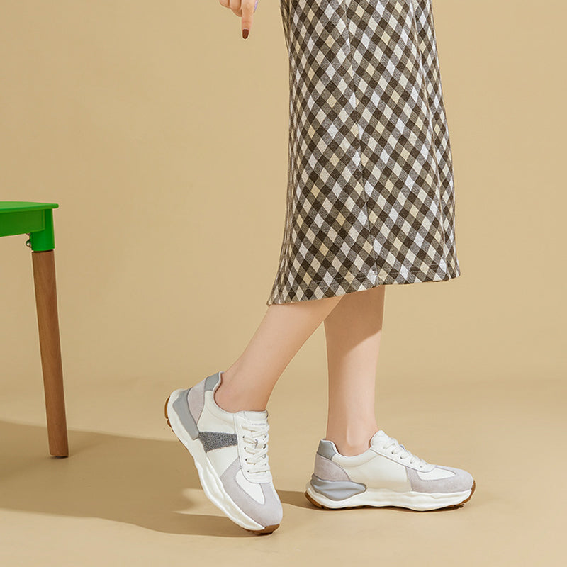 Women's German Army Trainer Leather Sneakers Colour Block With Original Sole in Grey/Coffee/Purple