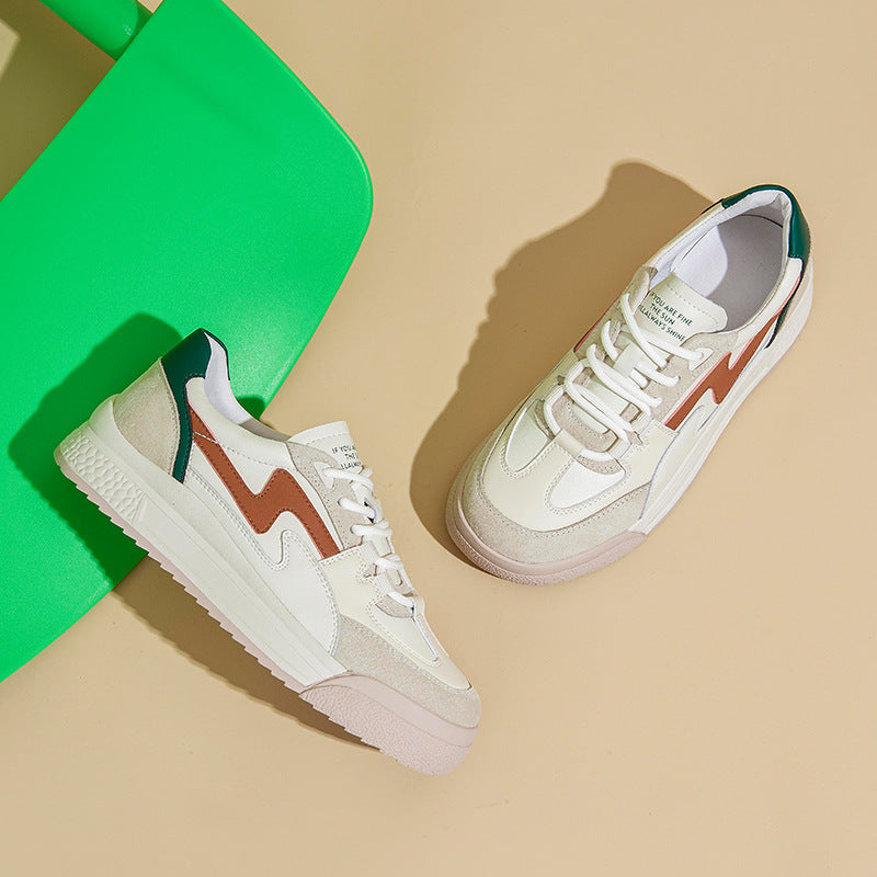 Contrasting Leather Upper, Round Toe, Front Lace-Up Fastening Sits On A Fashion Chunky Rubber Sole.Light And Comfortable For Walking.