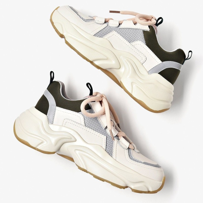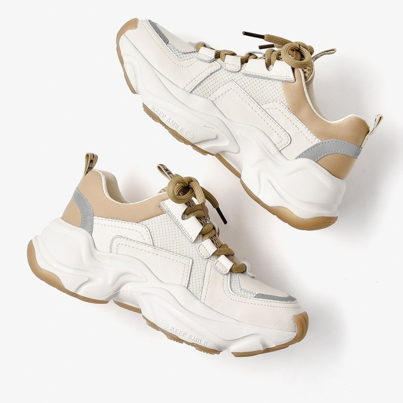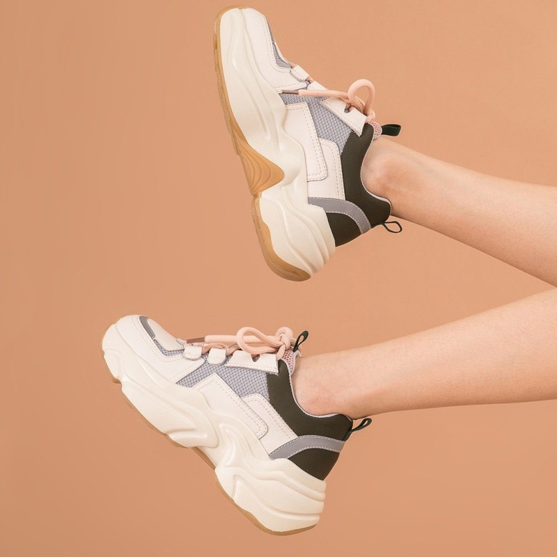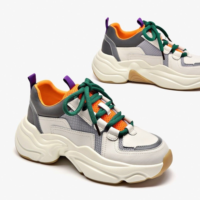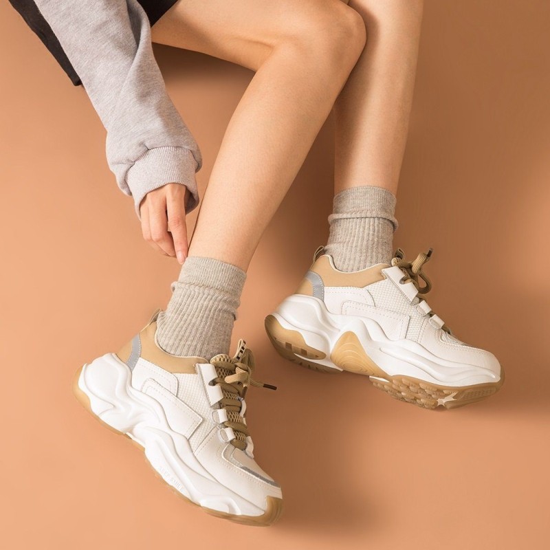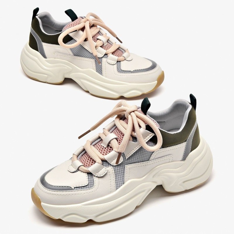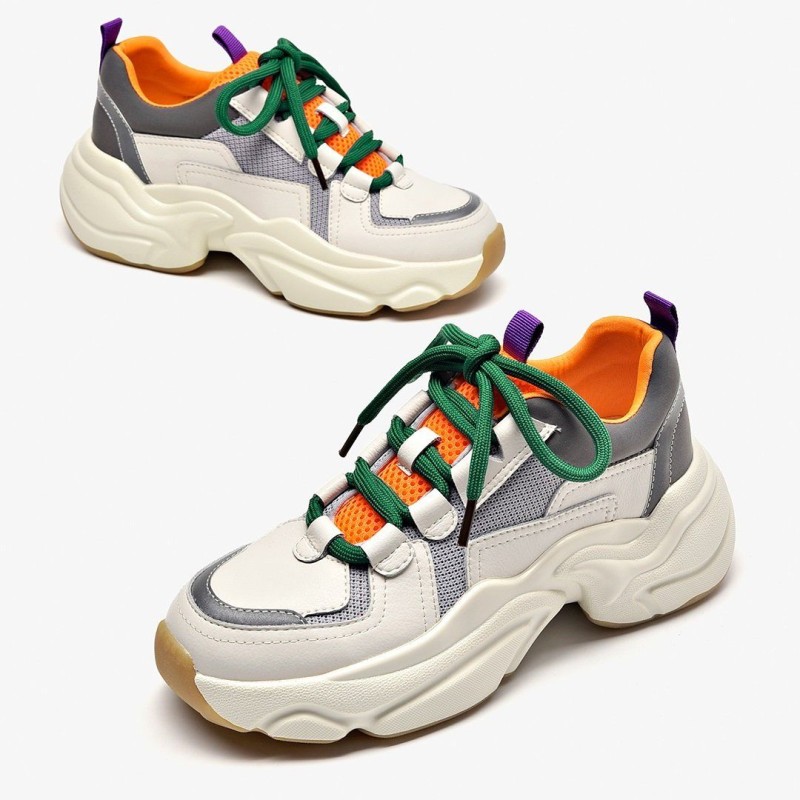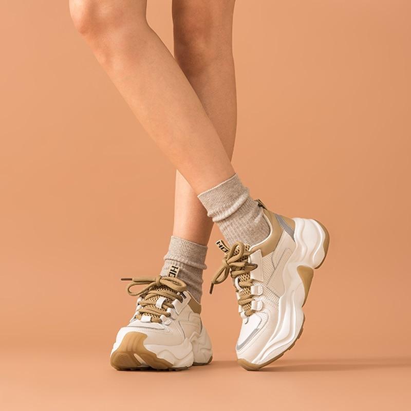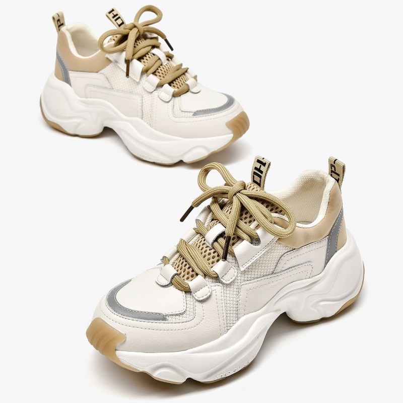 Chunky Sneakers Women Cow Leather Mesh Retro Casual Shoes Platform Lace-Up Trainers