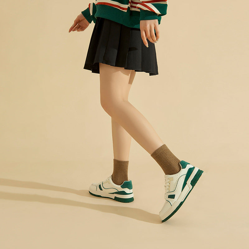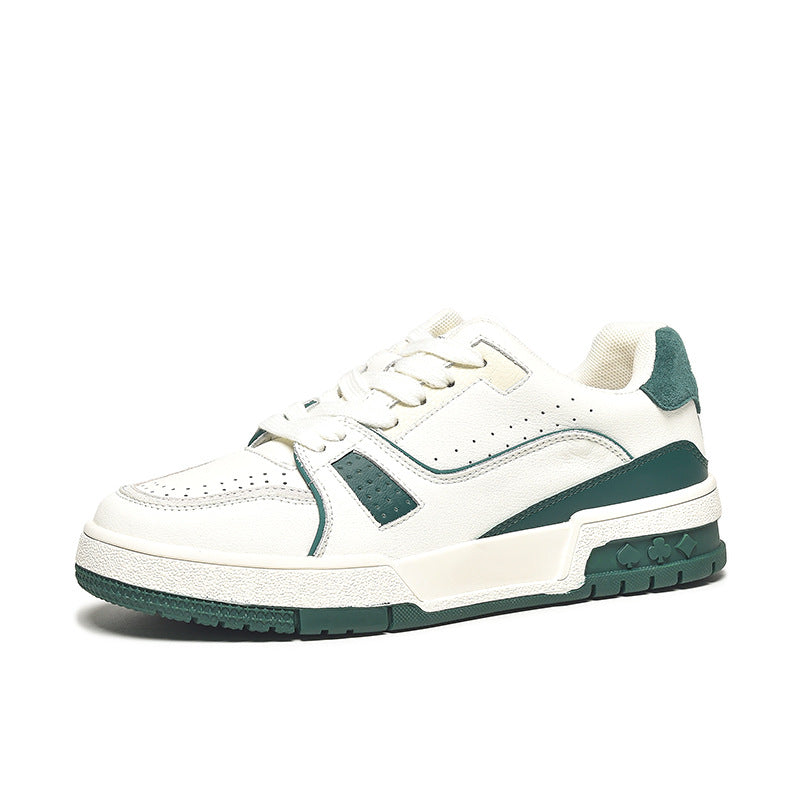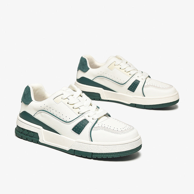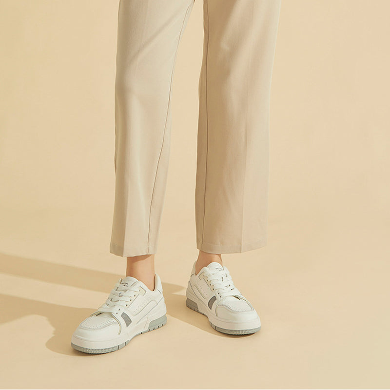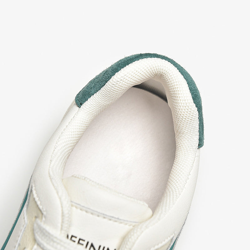 Women's Causal Genuine leather Sneakers - White Color Block With Green/Grey