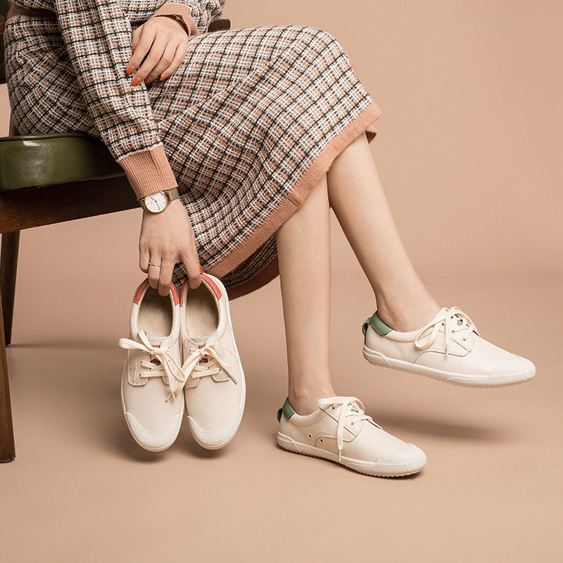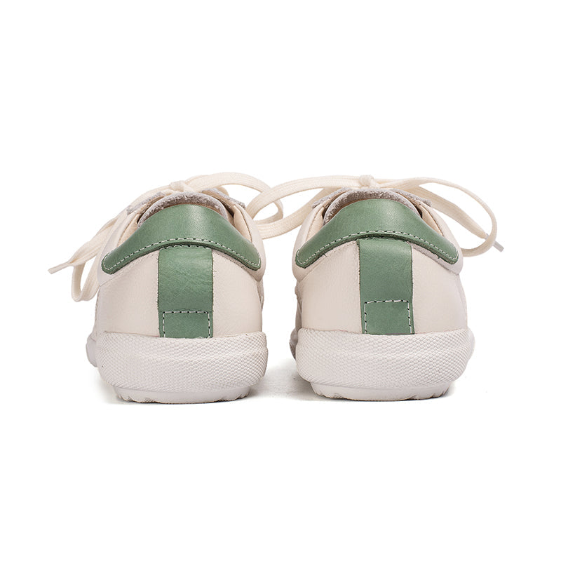 Handmade Soft Leather white shoes for women Lace up Sneakers Designer Shoes Red/Green