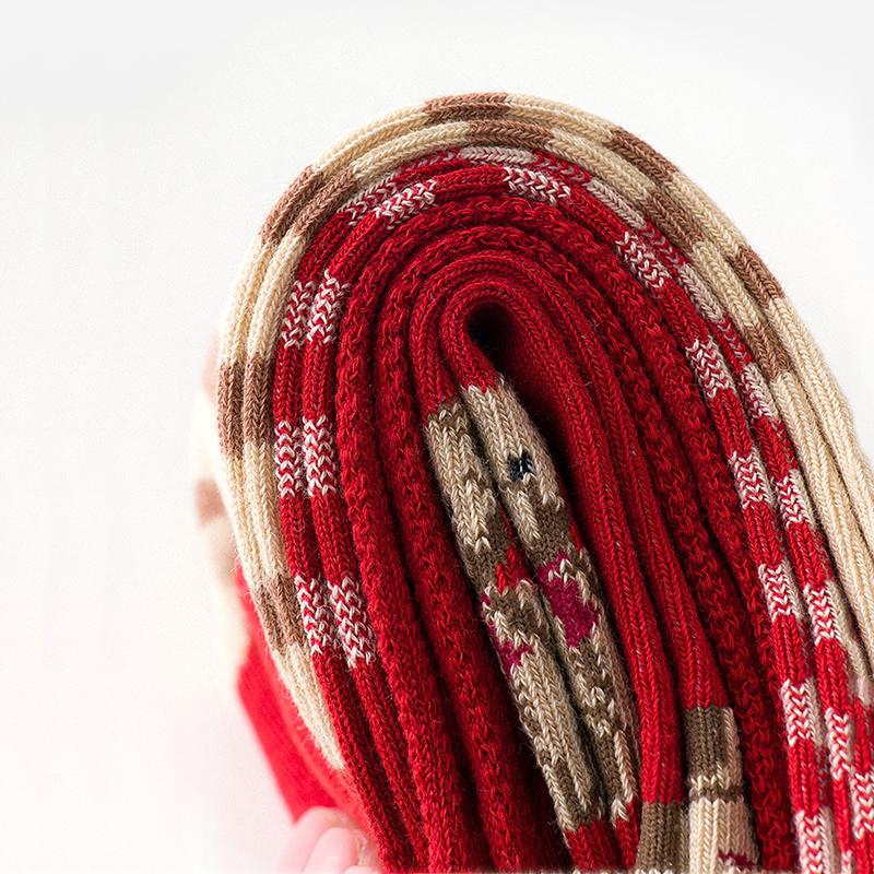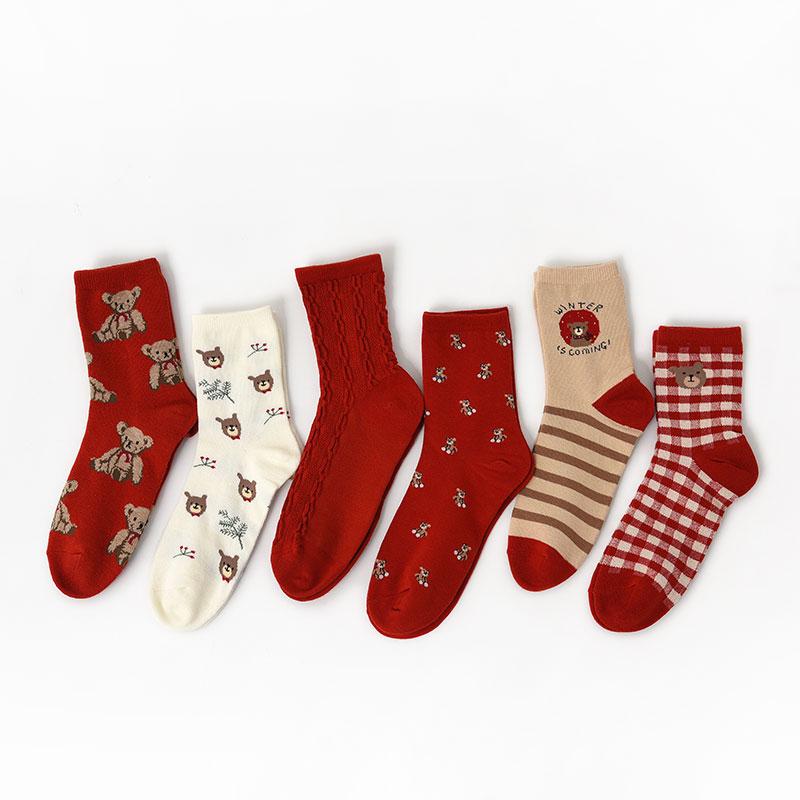 Red Bear Retro Cotton Stockings Calf Length Christmas Gifts Series 6 Pairs