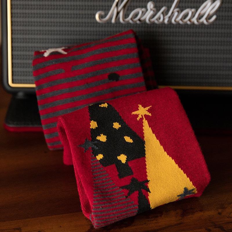 Christmas Tree Retro Cotton Stockings Calf Length Asymmetry Series 1 Pairs