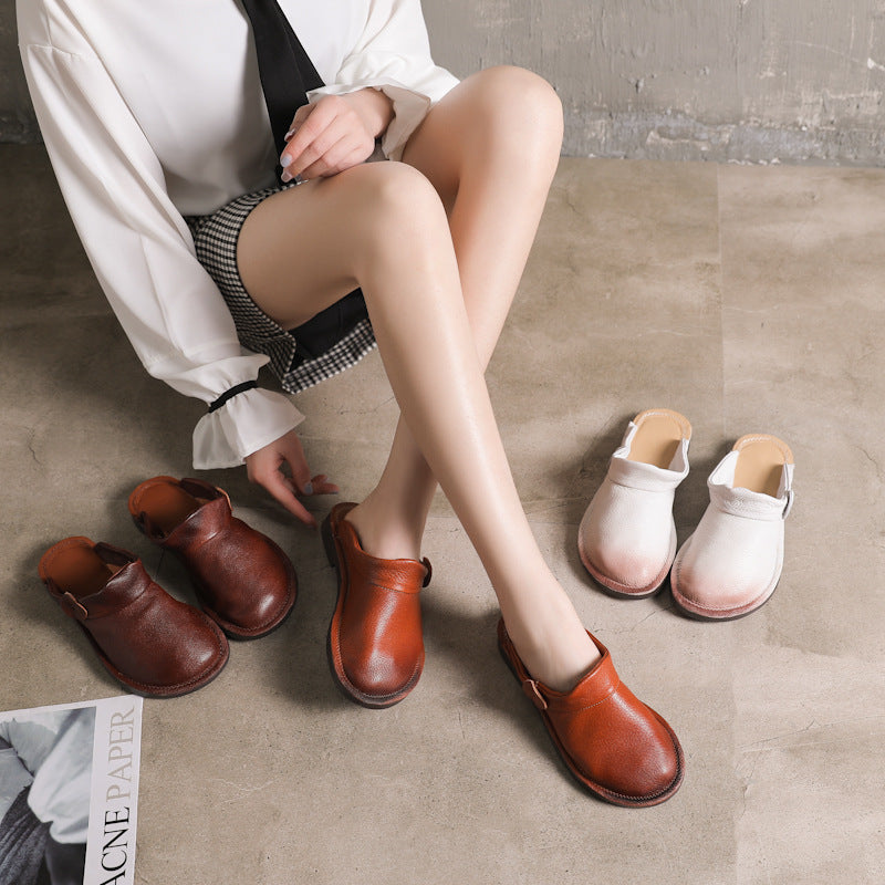 Genuine Leather Summer Slippers White/Brown/Coffee