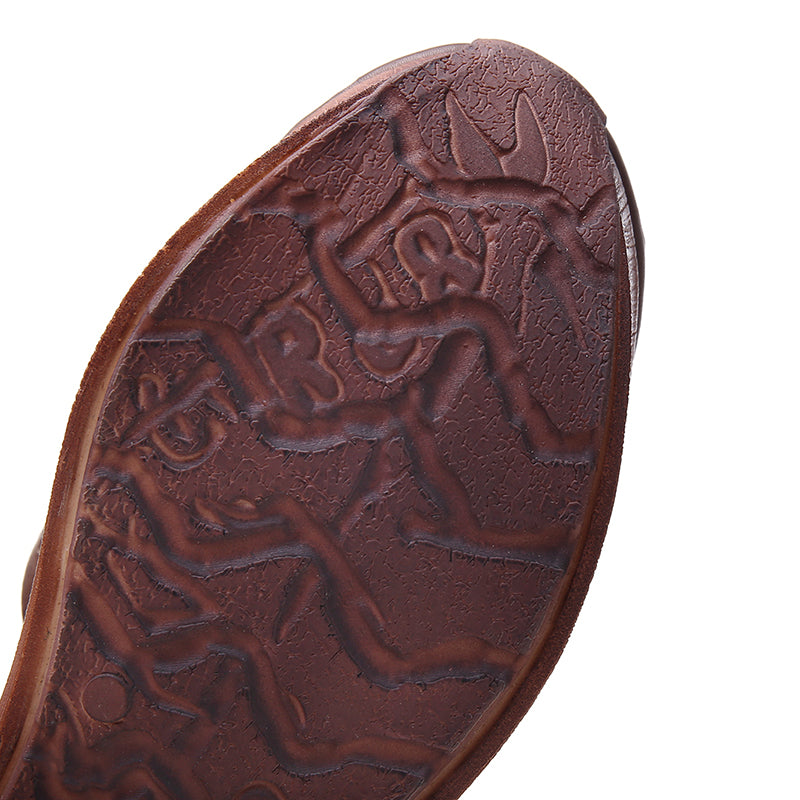 Womens Handmade Retro Leather Cut out Platforms Sandals in Brown/Coffee