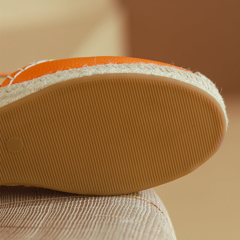 Slingback Espadrille-Wedge Leather Sandals in Beige/Green/Orange