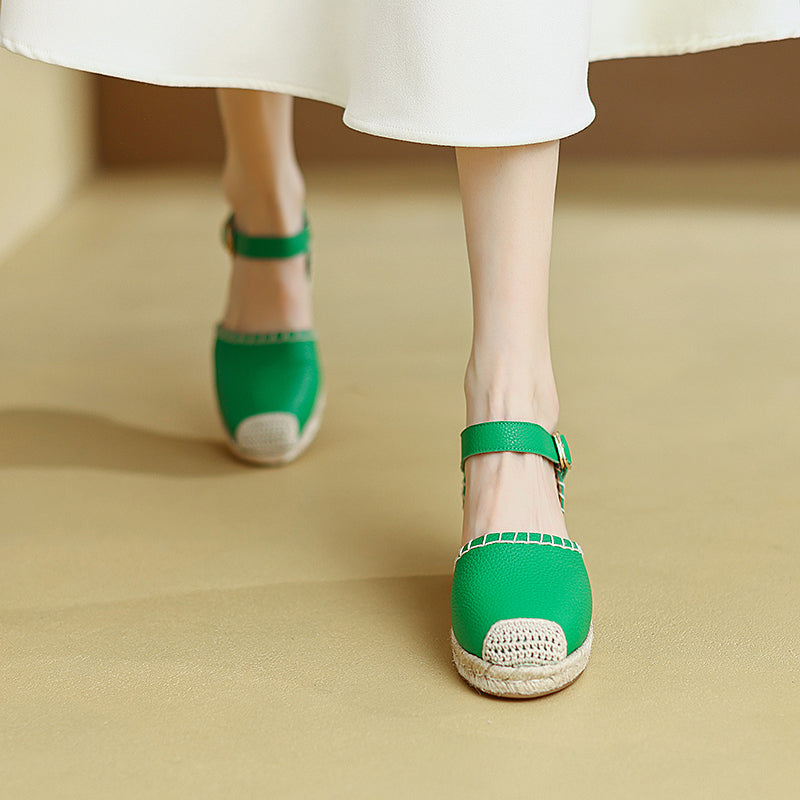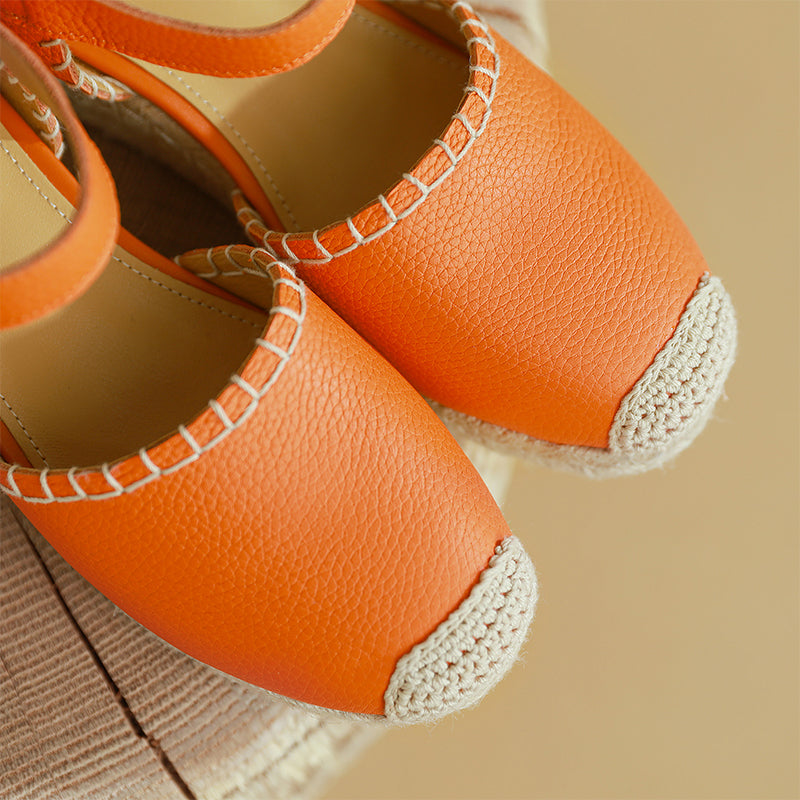 Espadrille-Wedge Close Toe Design, Picked Cow Leather Soft, Comfortable And Stand Wear And Tear. With 100% Genuine Leather Lining and 100% Sheepskin Insole, Soft, Breathable and Hygroscopic. The Oxford Bottom is Comfortable for Walking. Each Shoes Fixed by Experienced Craftsman.
