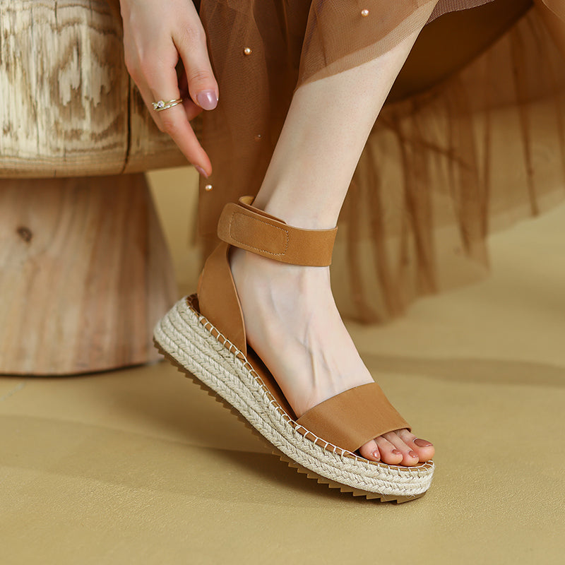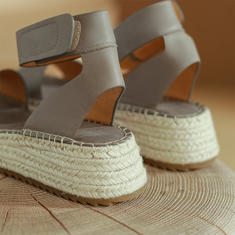 Espadrille-Wedge Open Toe Design, Picked Cow Leather Soft, Comfortable And Stand Wear And Tear. With 100% Genuine Leather Lining and Insole, Soft, Breathable and Hygroscopic. The Oxford Bottom is Comfortable for Walking. Each Shoes Fixed by Experienced Craftsman.