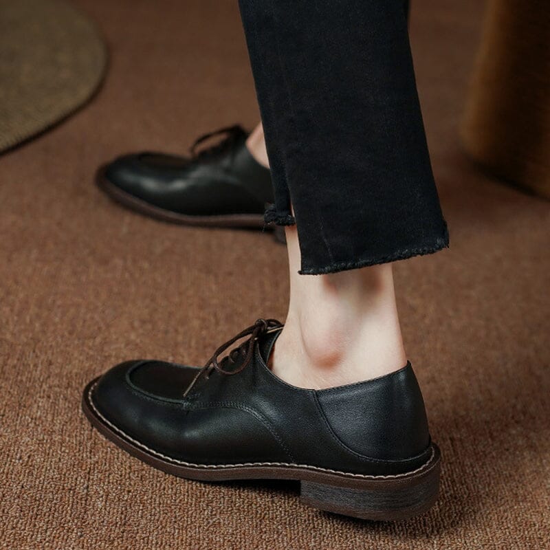 Handmade Calfskin Lace Up Oxfords For Women In Yellow Brown/Black