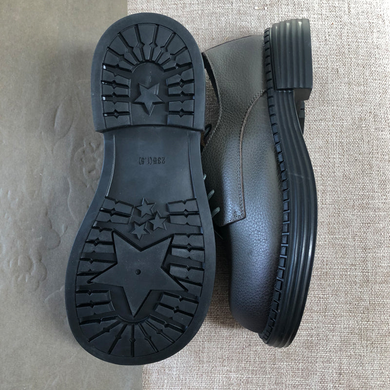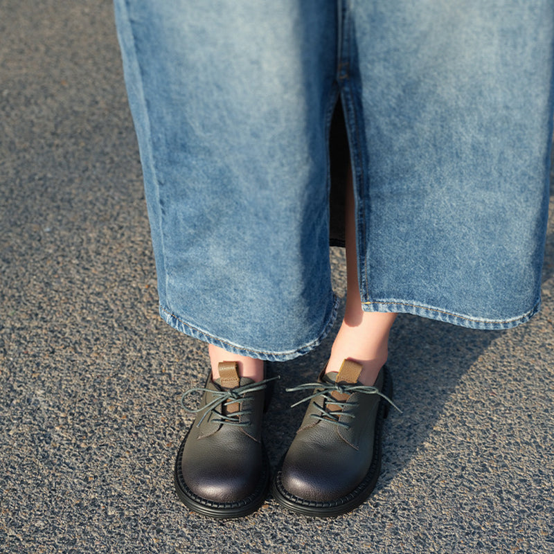 Retro Lace Up Leather Shoes Round Toe Oxford Shoes Grey/Black/Brown/Coffee
