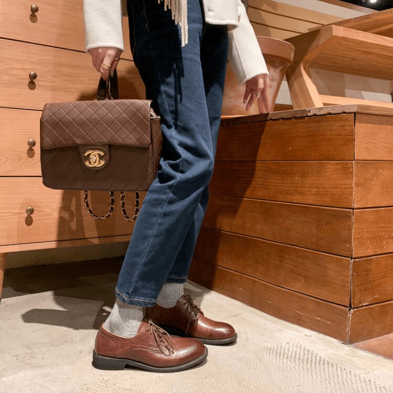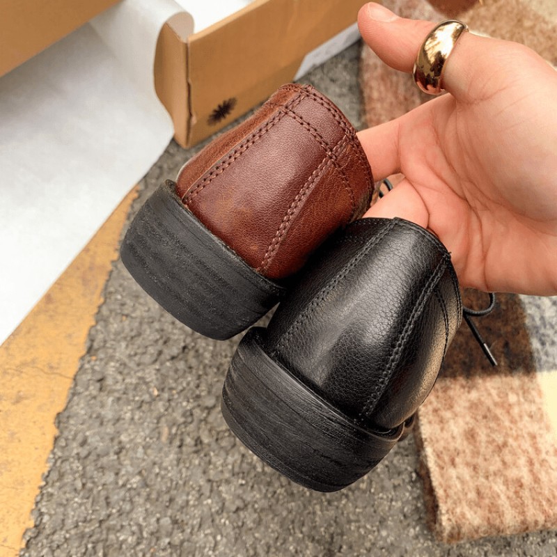 Lace Up Leather Derby Shoes for Women Round Toe Soft Oxford Shoes in Black/Brown