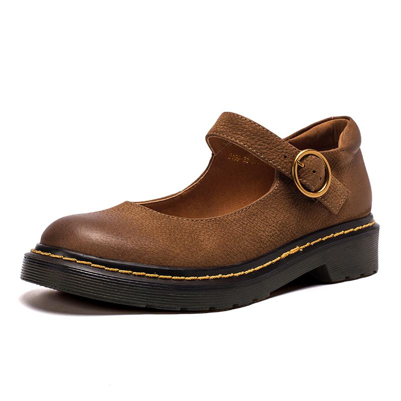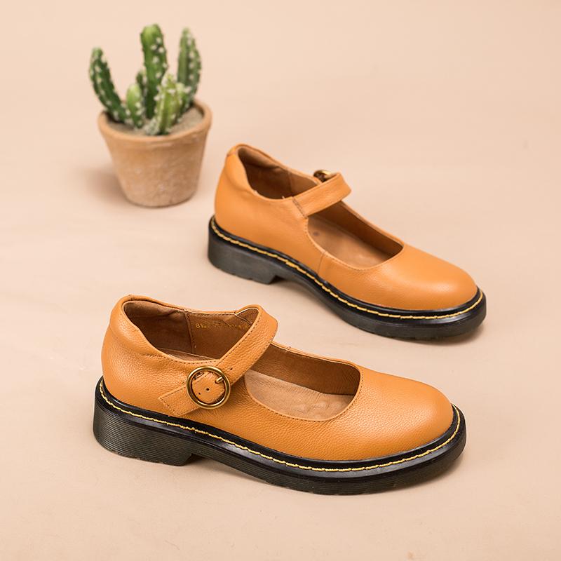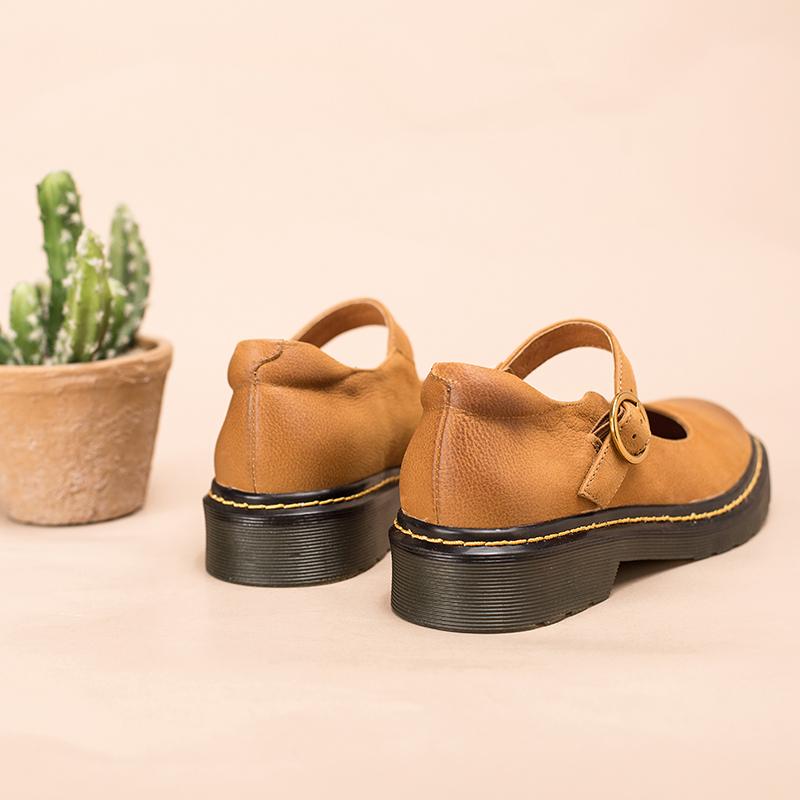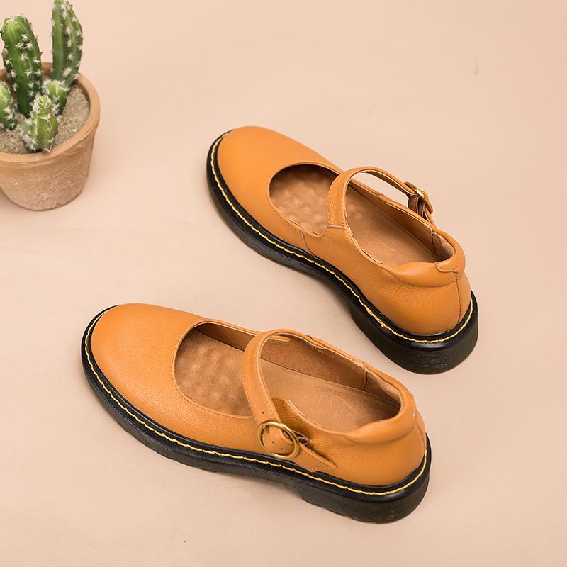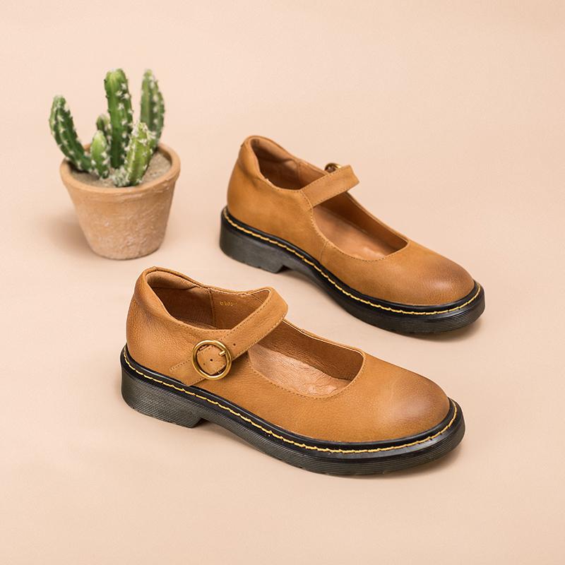 Handmade Retro Matte Leather Flat Mary Jane Shoes For Womens Round Toe Red/Brown/Coffee