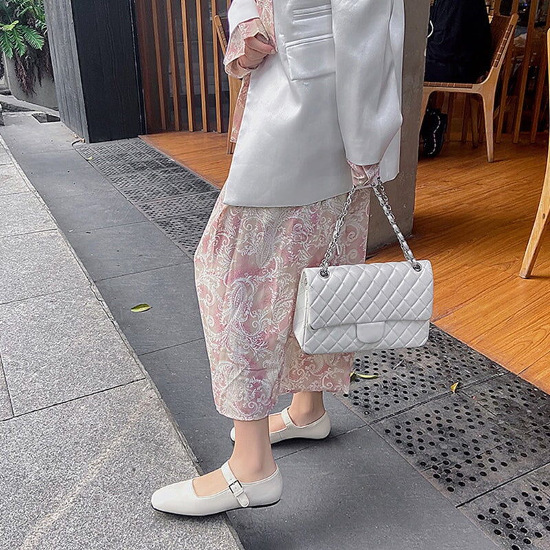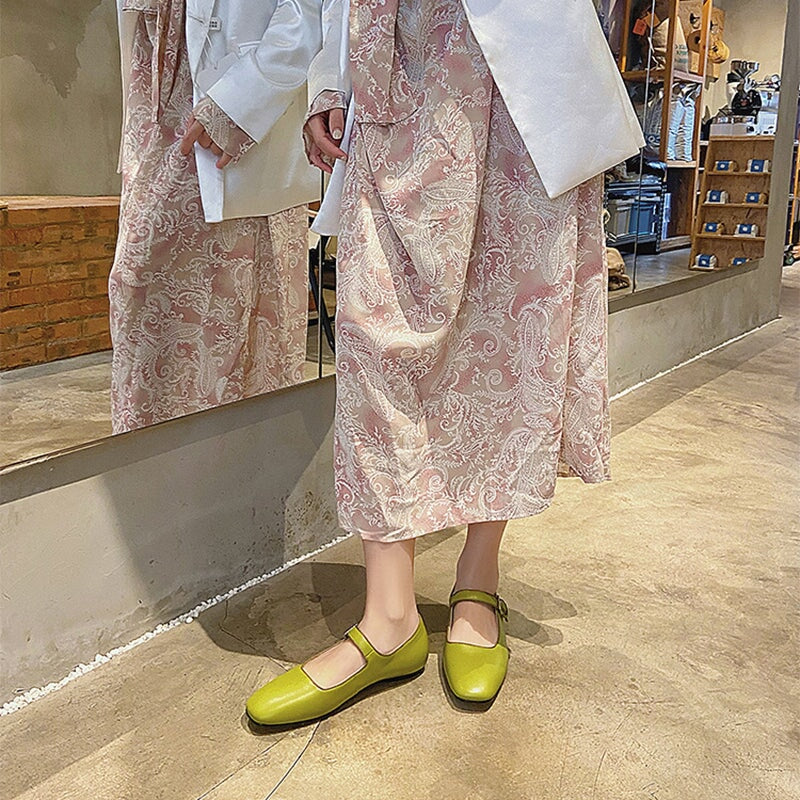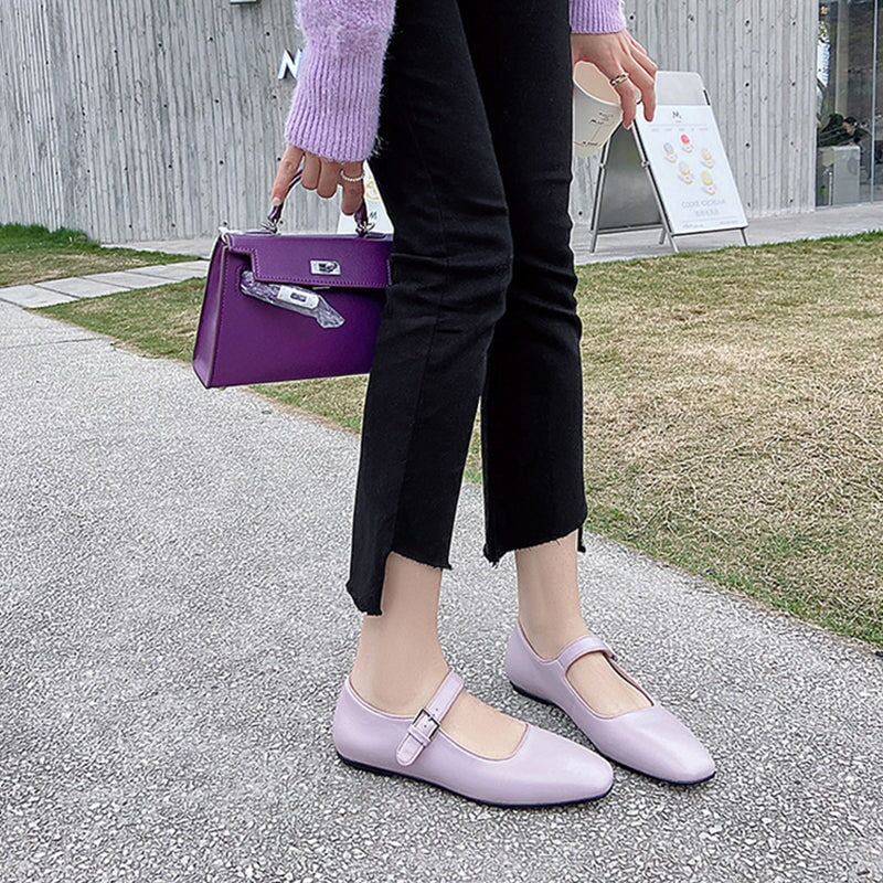 Soft Sheepskin Mary Jane Shoes Beige/Green/Purple