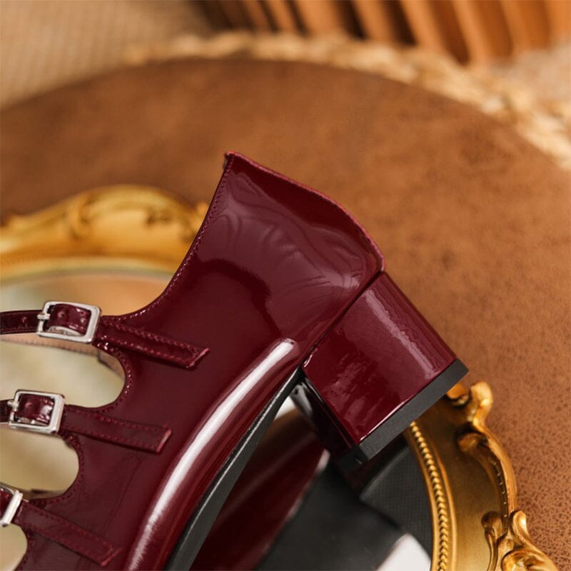 Classic Retro Styles for Spring, Summer and Antumn. Perfect match with all kinds of clothes. thee buckle-fastening straps, mid block heel, patent finish.