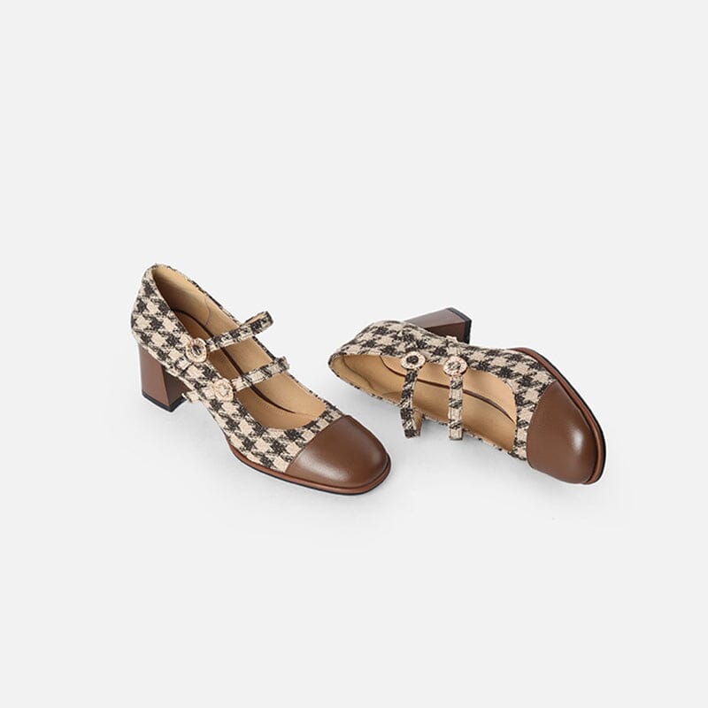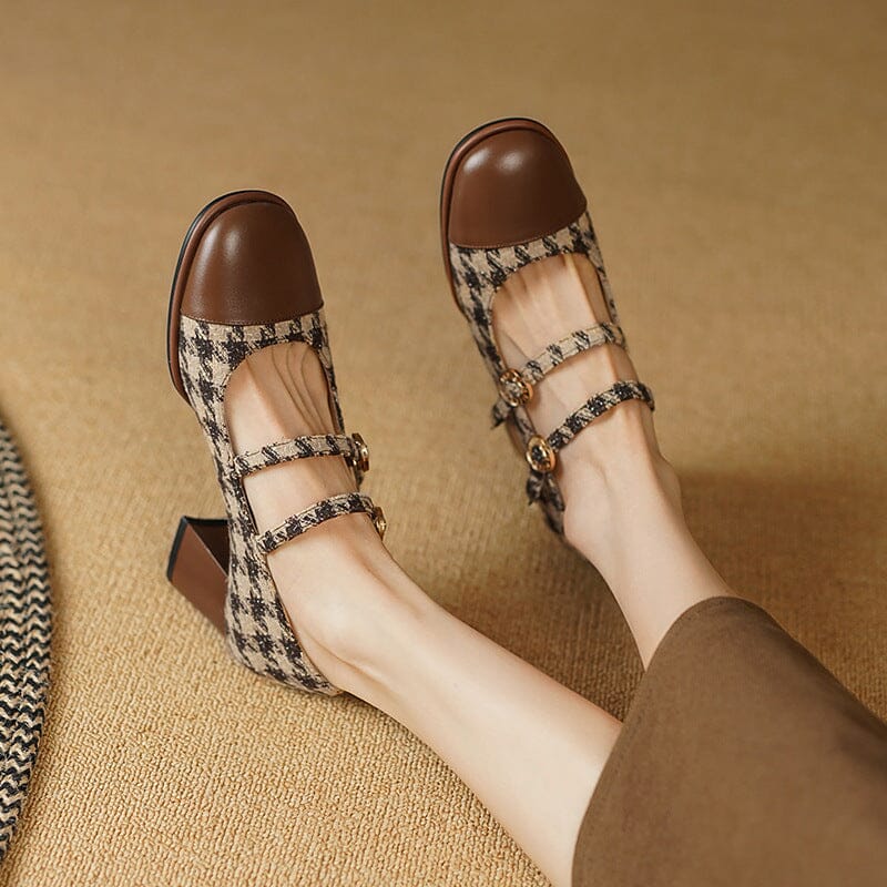 Leather Mary Jane Pumps Double Strap Block Heel Office Shoes