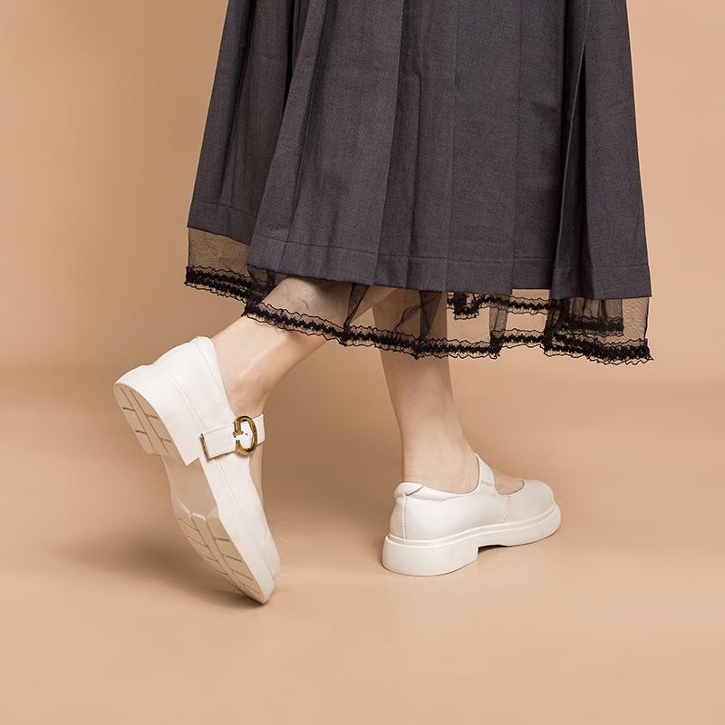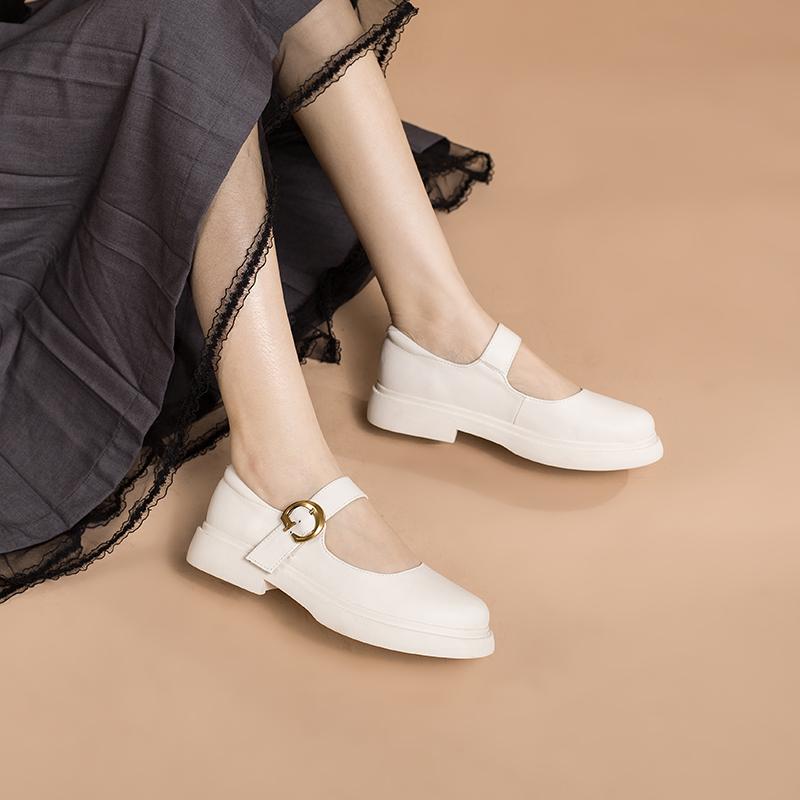 Handmade Leather Flat Mary Jane Shoes For Womens Round Toe White/Brown/Black