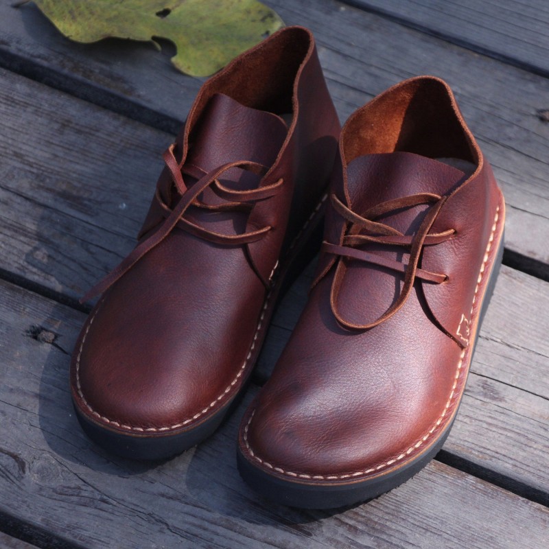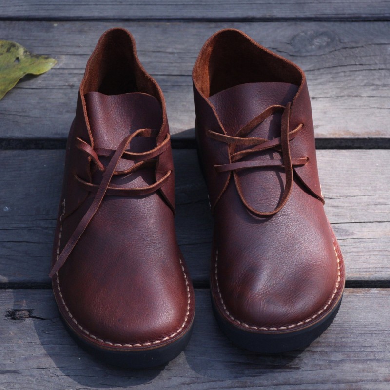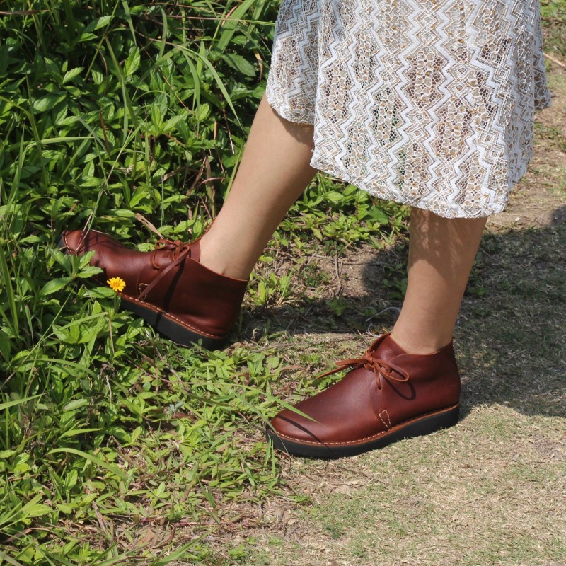 Middle English-Womens Handmade Full Grain Leather Flats Ankle Boots- Black/Brown