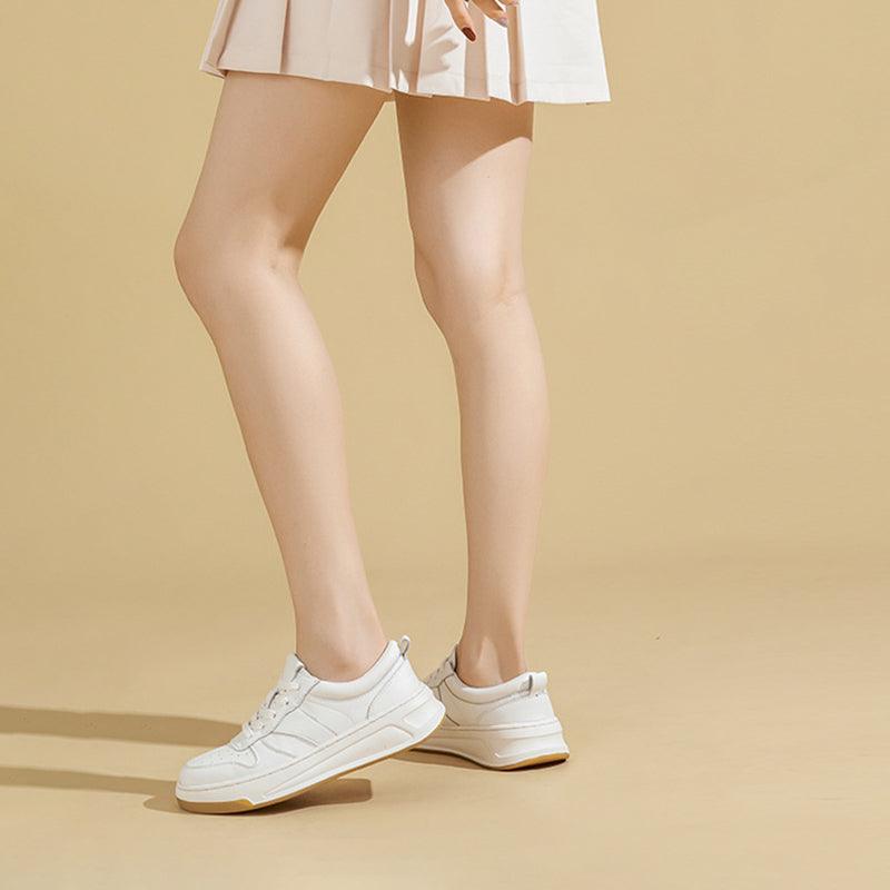Women's Causal Genuine leather Chunky Sneakers - Beige