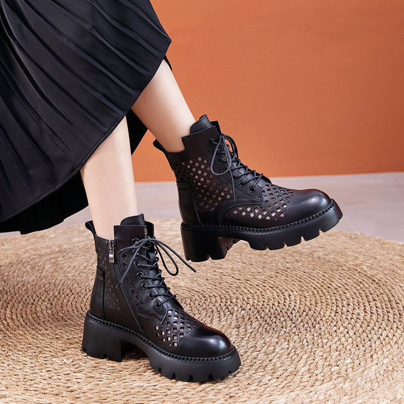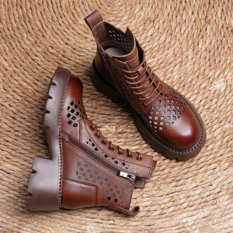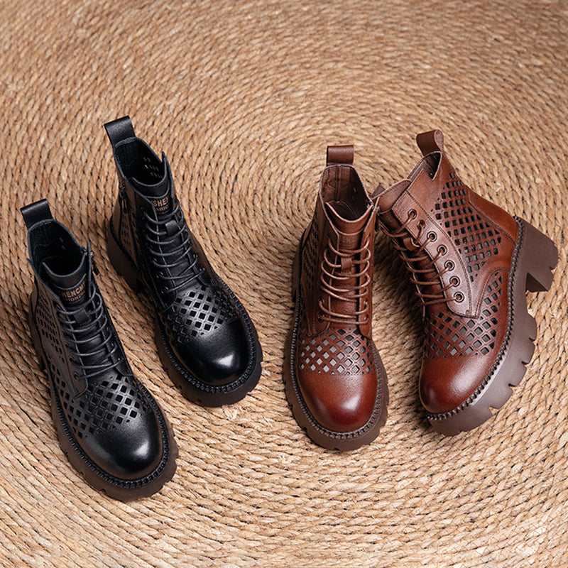 Handmade Genuine Leather Summer Boots Breathable Brown/Black/BrownNew/BlackNew