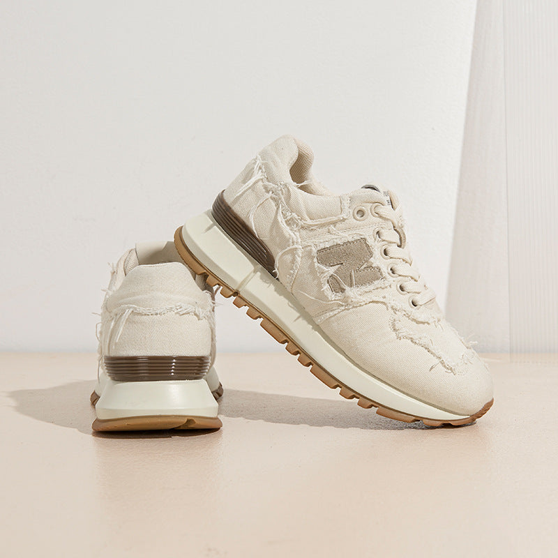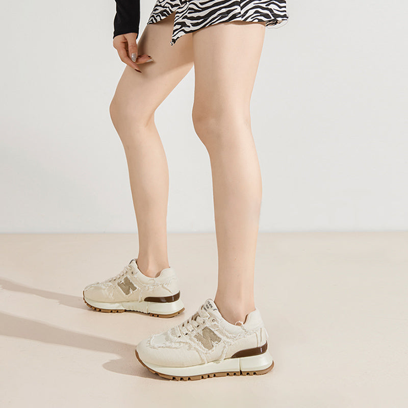 Canvas and Suede Leather Sneakers For Women in Khaki