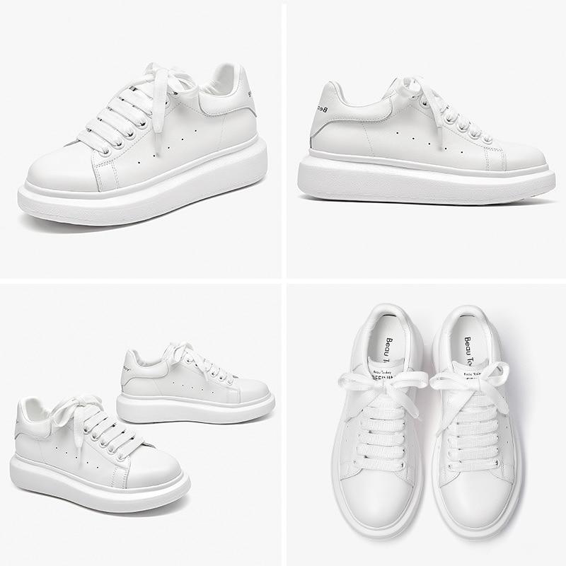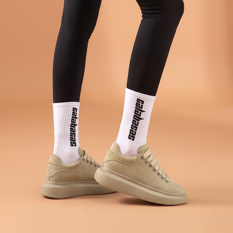 Women Platform Sneakers Cow Suede Leather Lace-Up Casual Round Toe Lady Flats Shoes with Thick Sole Handmade