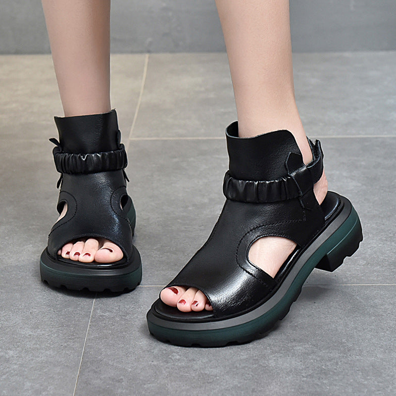 Handmade Leather Light Platform Sandals For Women Mori Girl Style Retro Flip Flops Shoesblack Black/Brown/Coffee