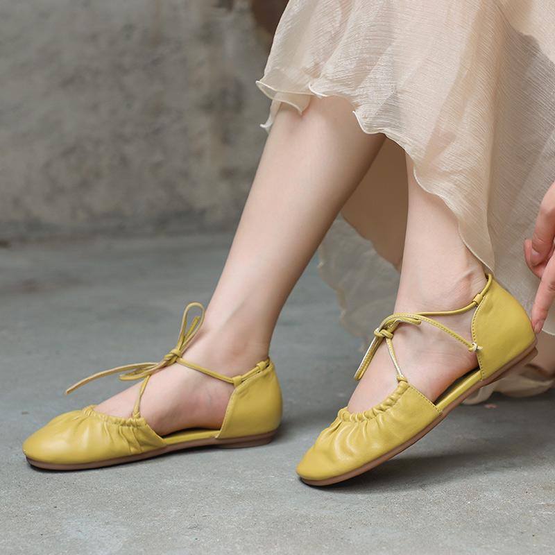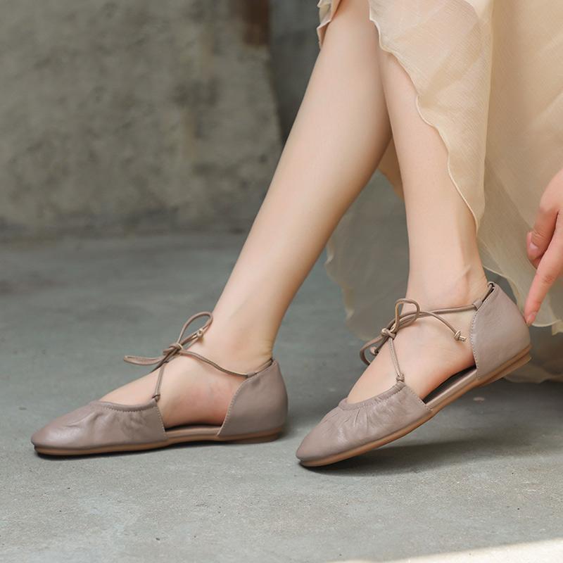 Soft Leather Strappy Sandals Slip Ons Handmade Closed Toe Beige