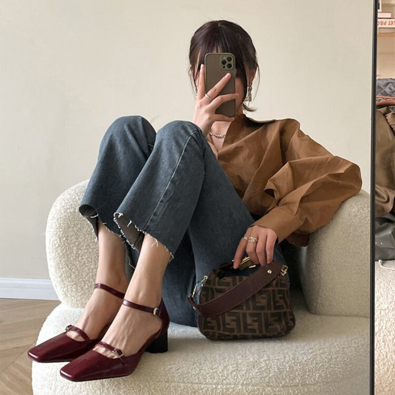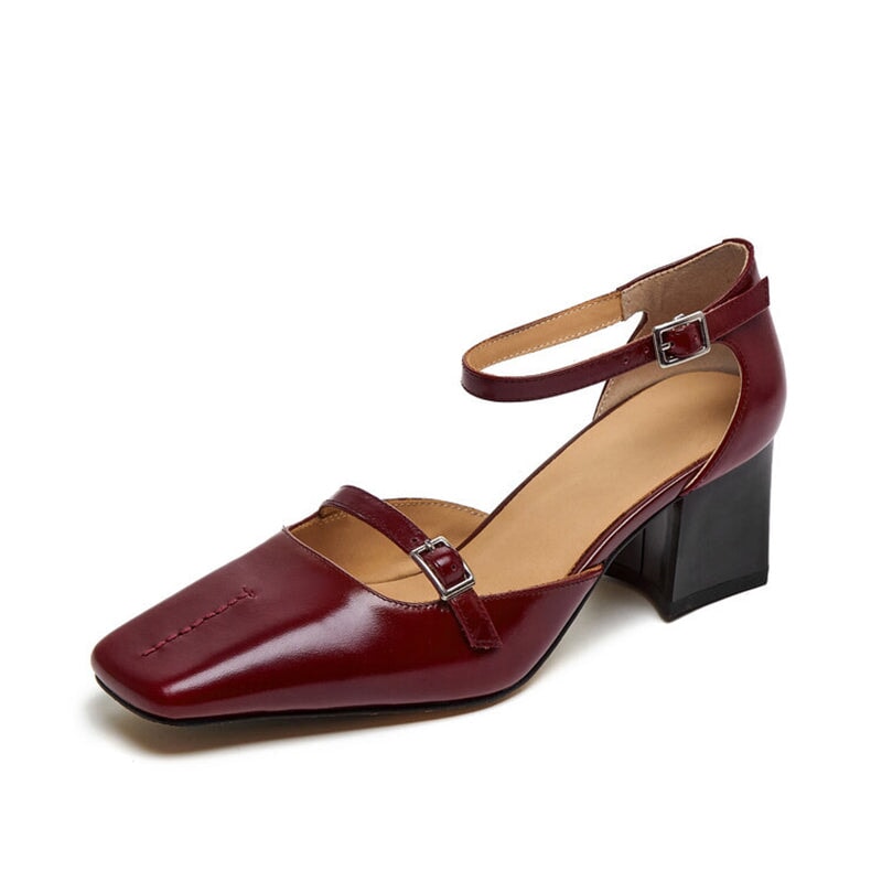Elegant Handmade Retro Square Toe Design, Metal Adjustable Buckle.