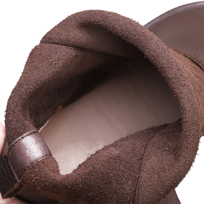 Handmade Women's Leather Booties Round Toe Velcro Flat Ankle Boots Brown/Black/Coffee