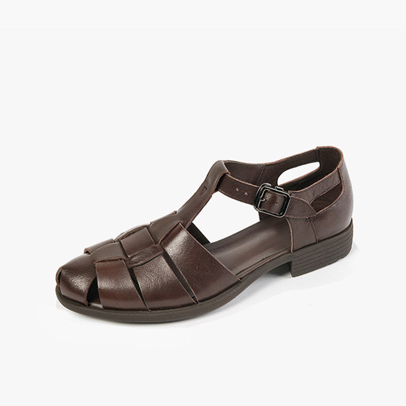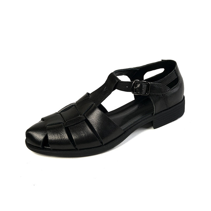Designer Fisherman Shoes Genuine Leather Gladiator Sandals Soft Knit Retro Chunky Buckle Shoes