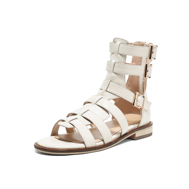 Genuine Leather Gladiator Sandals For Women Black/Off white