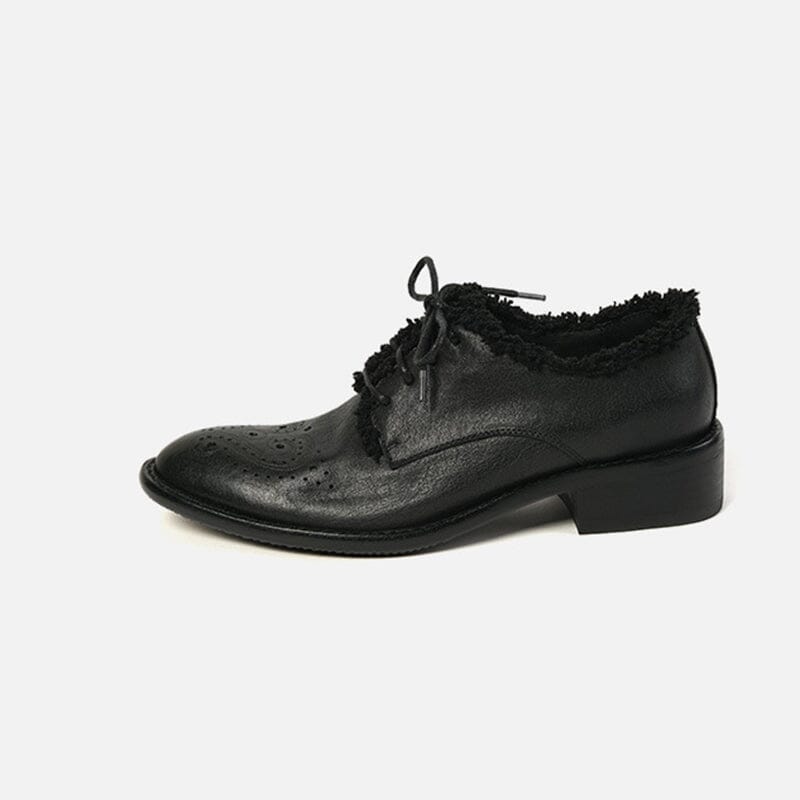Women Wingtip Shoes Handmade Leather Brogues Oxfords & Tie Low Heel Elegant Brown/Black