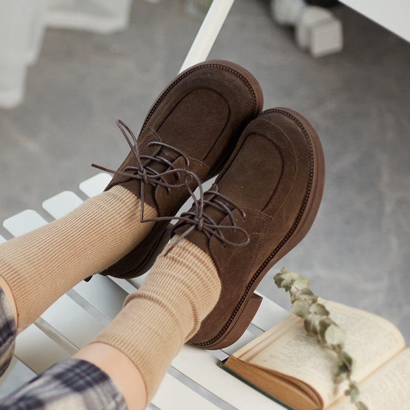 Retro Lace Up Leather Shoes Round Toe Oxford Shoes Black/Brown/Coffee