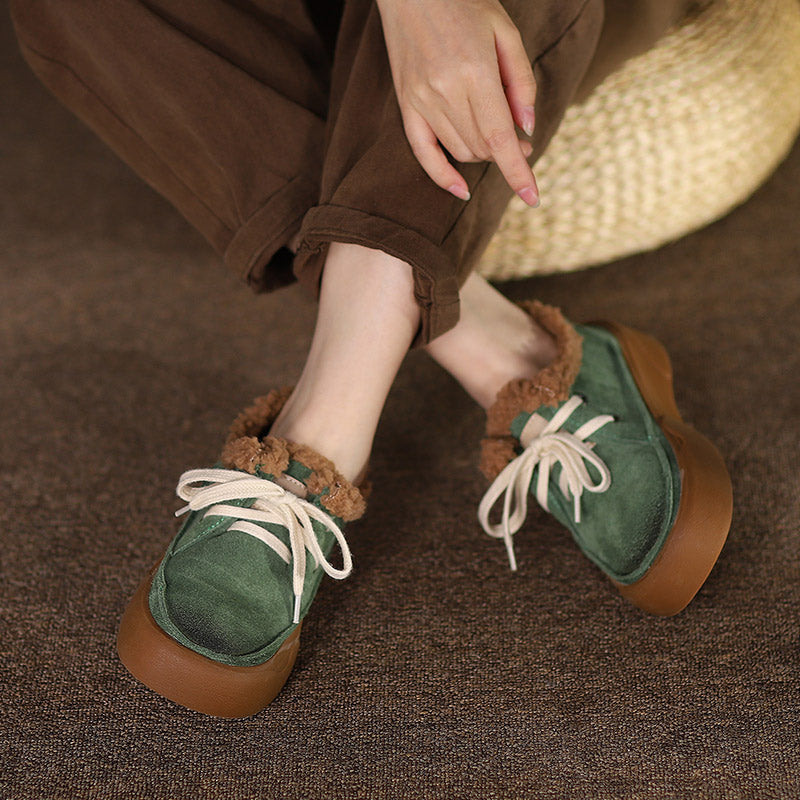 Handmade Soft Leather Lace Up Platform Oxford Shoes Coffee/Green