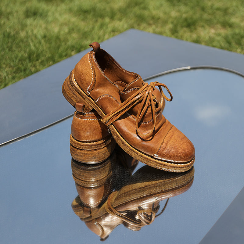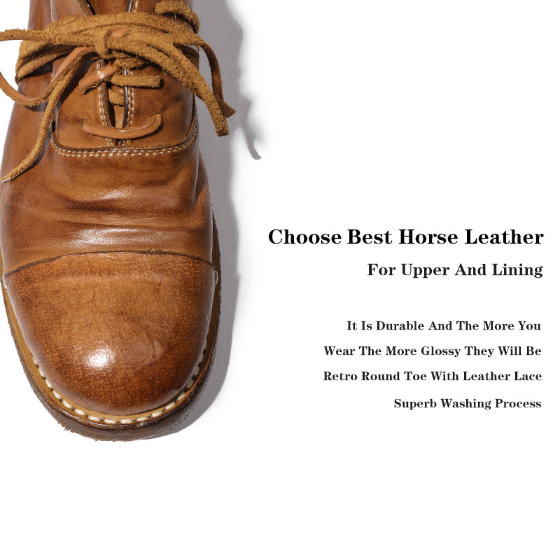 1,Choose Best Horse Leather For Upper And Lining, It Is Durable And The More You Wear The More Glossy They Will Be. Retro Round Toe With Leather Lace,Superb Washing Process.