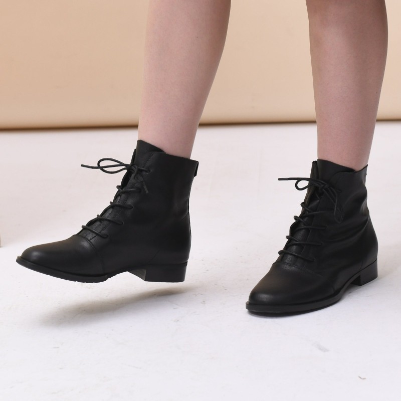 Women Martin Boots Lace Up Short Boots Handmade Leather Full Grain Leather Black/Brown